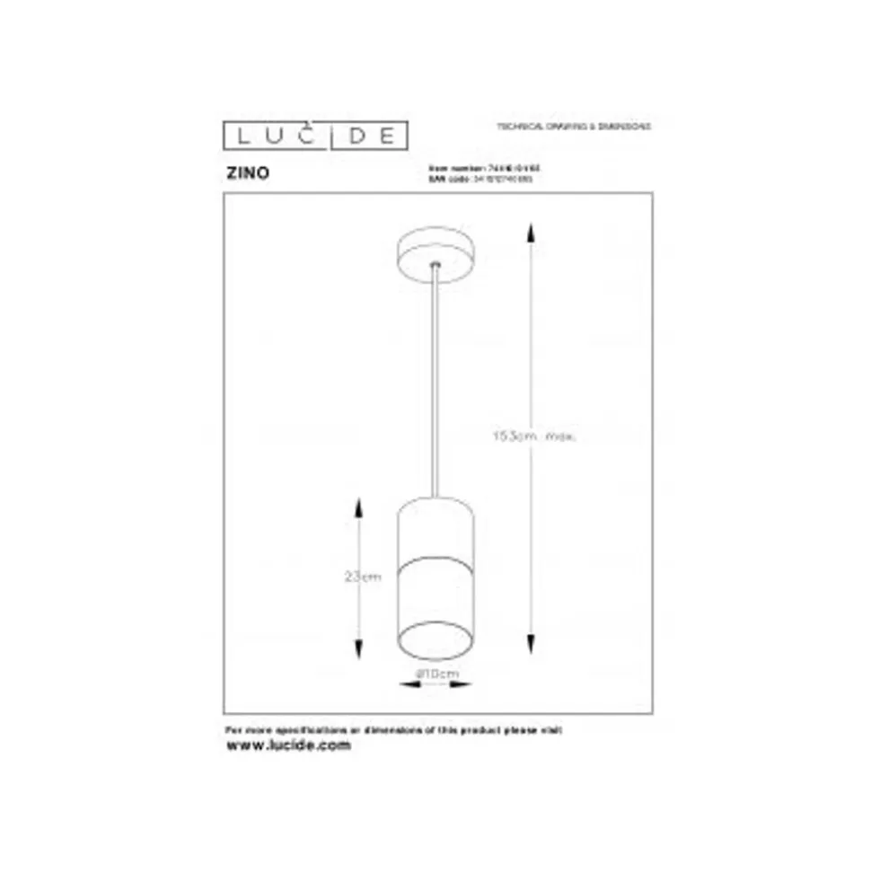 Lucide ZINO – Hanglamp – Ø 10 cm – 1xE27 – Zwart