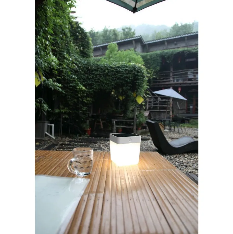 Handige en verplaatsbare witte tafellamp op zonne-energie voor buiten. De 3-staps dimmer zorgt altijd voor de juiste sfeer in combinatie met voldoende autonomie. Met de touchdimmer dim je het witte licht of kies je een van de 4 felle kleuren.