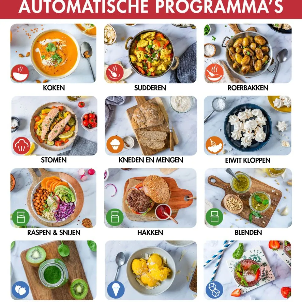 12 programma’s waarmee gemakkelijk de dagelijkse tot de ingewikkelde maaltijden gemaakt kunnen worden.