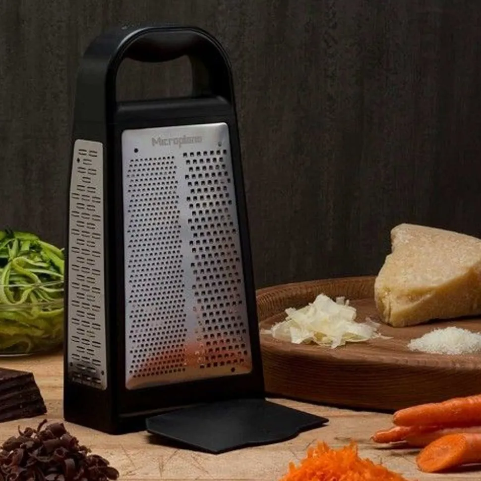 Deze veelzijdige 5-in-1 rasptool heeft fijne, grove, platte, ultra-grove en grote scheermesjes voor een verscheidenheid aan snijoppervlakken en texturen.