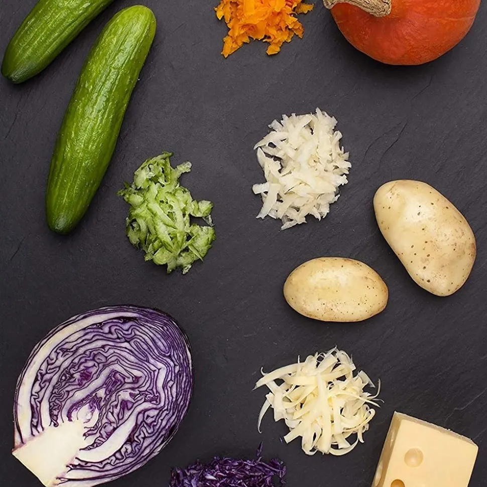 De hoogwaardige Gourmet-serie is prachtig gemaakt en beschikt over zeven raspopties: grof, medium lint, fijn, groot scheerapparaat, extra grof, stervormig en ultra grof.