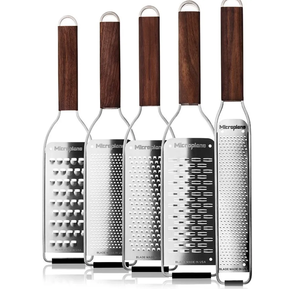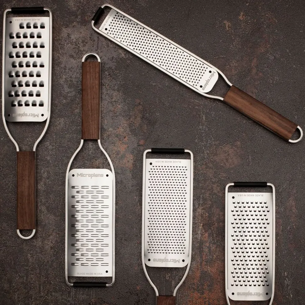 Microplane® lanceert Master Series, een nieuwe collectie elegant ontworpen handraspen vervaardigd in walnoot en roestvrij staal. De Master Series weerspiegelt het iconische erfgoed van de houtwinkel van Microplane en de populaire ambachtelijke styling van vandaag en biedt het beste op het gebied van eigentijdse styling, duurzaamheid en onberispelijke prestaties. De uitzonderlijk mooie, geoliede notenhouten handgrepen (hout afkomstig uit de VS) liggen comfortabel in de hand en voegen een opvallend warm en chique design toe aan keukendecors. Met keer op keer superieure resultaten en jarenlang plezier, is de Master Series de perfecte keuze voor de vakman in de keuken.