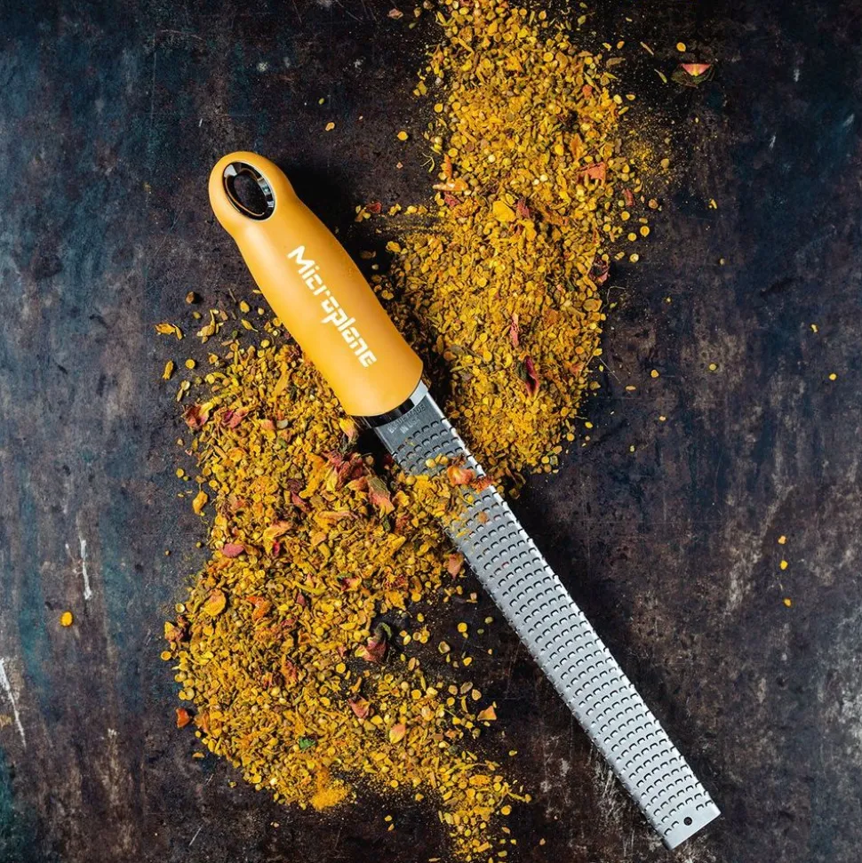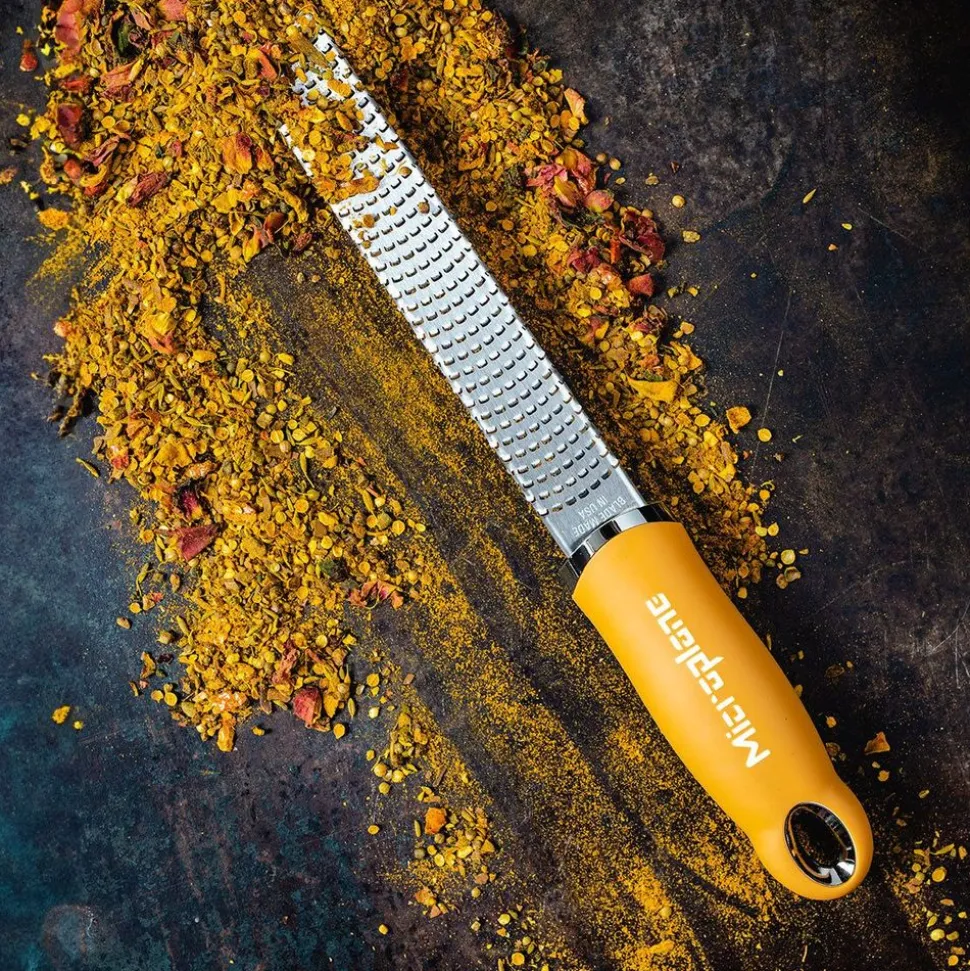 Vernieuwde handgrepen voor een klassieke zester Deze versie van de klassieke Microplane zester/kaasrasp heeft een premium zacht aanvoelende handgreep en krasvrije eindlipjes. Dit gereedschap raspt zelfs de hardste Parmezaanse kaas Reggiano en andere harde kazen tot fijne kanten slierten. Ideaal als topping op je favoriete spaghetti en gehaktballetjes of een Caesarsalade. Het is ook heerlijk voor het moeiteloos schillen van citrusvruchten, om natuurlijke smaken toe te voegen aan een citroencrème brulee of een basisvinaigrette