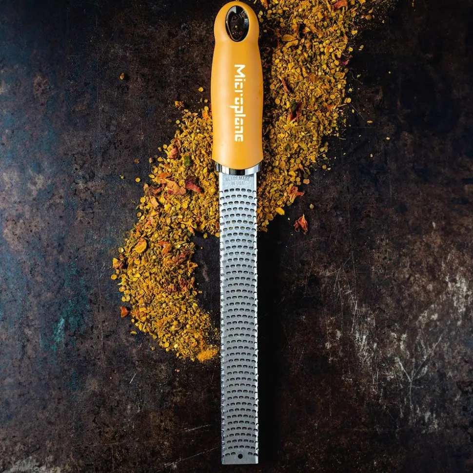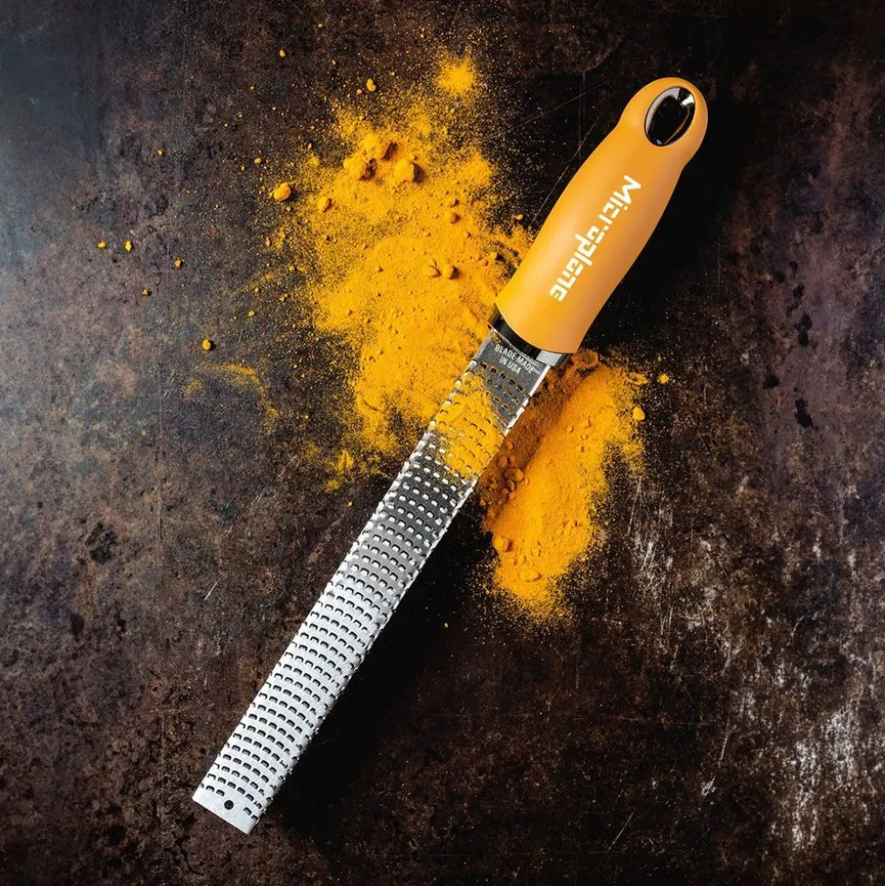 Deze premium klassieke zester wordt gebruikt door beroemde chef-koks, restaurants en thuiskoks. Dit gereedschap heeft het originele mes dat het hele assortiment zestegereedschappen op de markt heeft gecreëerd. Als je het beste gereedschap wilt, dan is dit het. Microplane is de standaard waaraan iedereen probeert te voldoen. Wees niet teleurgesteld over andere zeste-tools op de markt. Mensen zeggen dat deze tool hun leven heeft veranderd. Schil de citrusvruchten op de perfecte diepte om alleen de schil te verkrijgen, en niet het bittere witte merg. Het is een multifunctioneel hulpmiddel en wordt aanbevolen voor het raspen van knoflook, het raspen van gember en het raspen van Parmezaanse kaas. Je kunt de kaasrasp ook gebruiken als nootmuskaat of profiteren van de voordelen van kaneel door het op dit gereedschap te raspen.