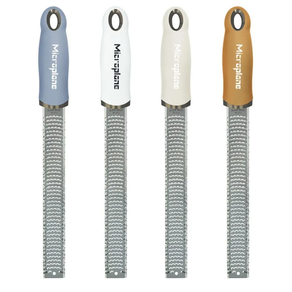 Vernieuwde handgrepen voor een klassieke zester Deze versie van de klassieke Microplane zester/kaasrasp heeft een premium zacht aanvoelende handgreep en krasvrije eindlipjes. Dit gereedschap raspt zelfs de hardste Parmezaanse kaas Reggiano en andere harde kazen tot fijne kanten slierten. Ideaal als topping op je favoriete spaghetti en gehaktballetjes of een Caesarsalade. Het is ook heerlijk voor het moeiteloos schillen van citrusvruchten, om natuurlijke smaken toe te voegen aan een citroencrème brulee of een basisvinaigrette