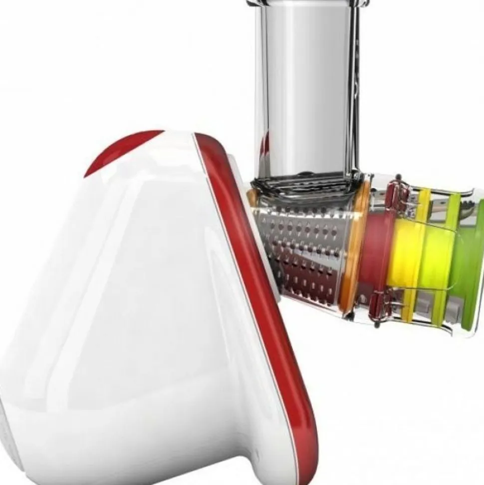 Een multifunctioneel apparaat voor het eenvoudig raspen en snijden van groente en fruit, kaas (gruyère en Parmezaanse kaas), noten, chocolade