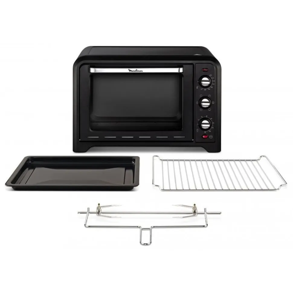 Accessoires zijn inbegrepen voor gemakkelijk koken: verstelbaar rooster kan op 8 niveaus worden geplaatst, bakplaat om snel uw gerechten op te warmen, braadspit
