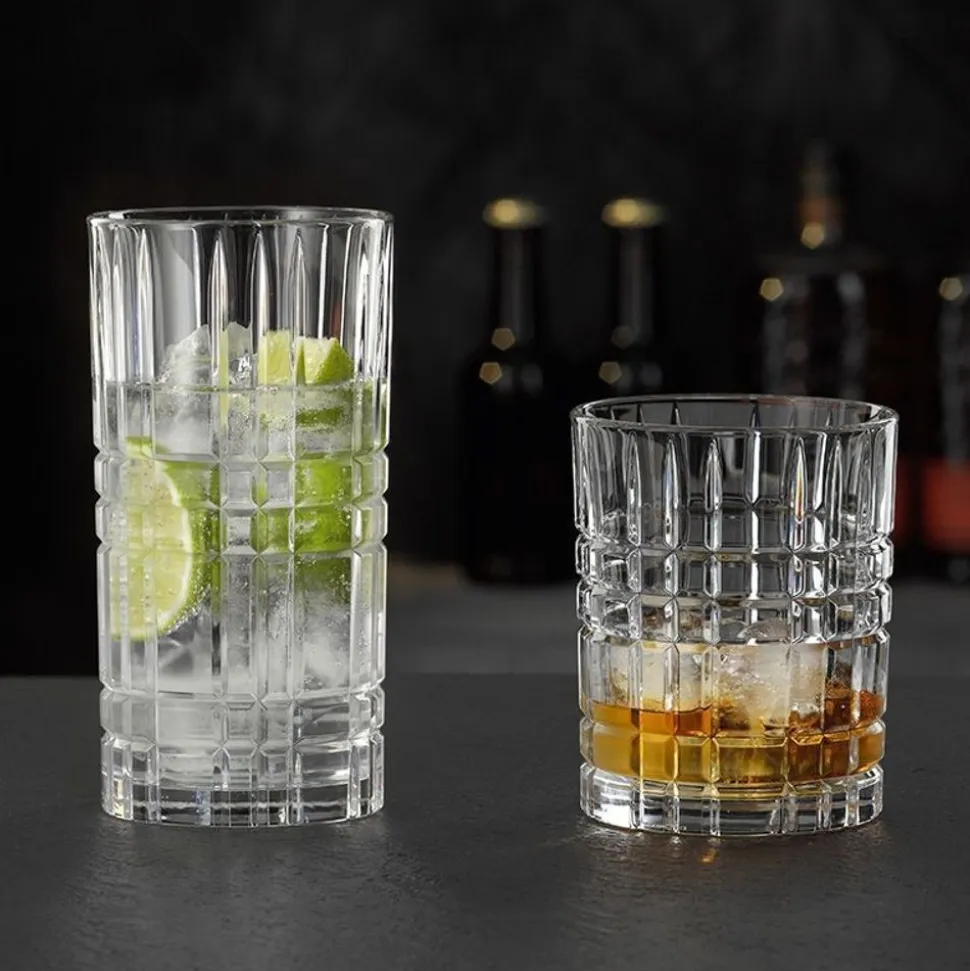 HIGHLAND bekers en longdrinkglazen zijn perfect voor fijne whisky’s, cocktails, sappen en frisdranken en zijn een ware uitdrukking van levensstijl. Klassiek en toch onderscheidend in design, ze zijn de perfecte manier om te genieten van een drankje met vrienden en goed gezelschap. Deze hoogwaardige, stijlvolle glazen voegen een vleugje luxe en sprankeling toe aan je thuisbar of tafelaankleding.