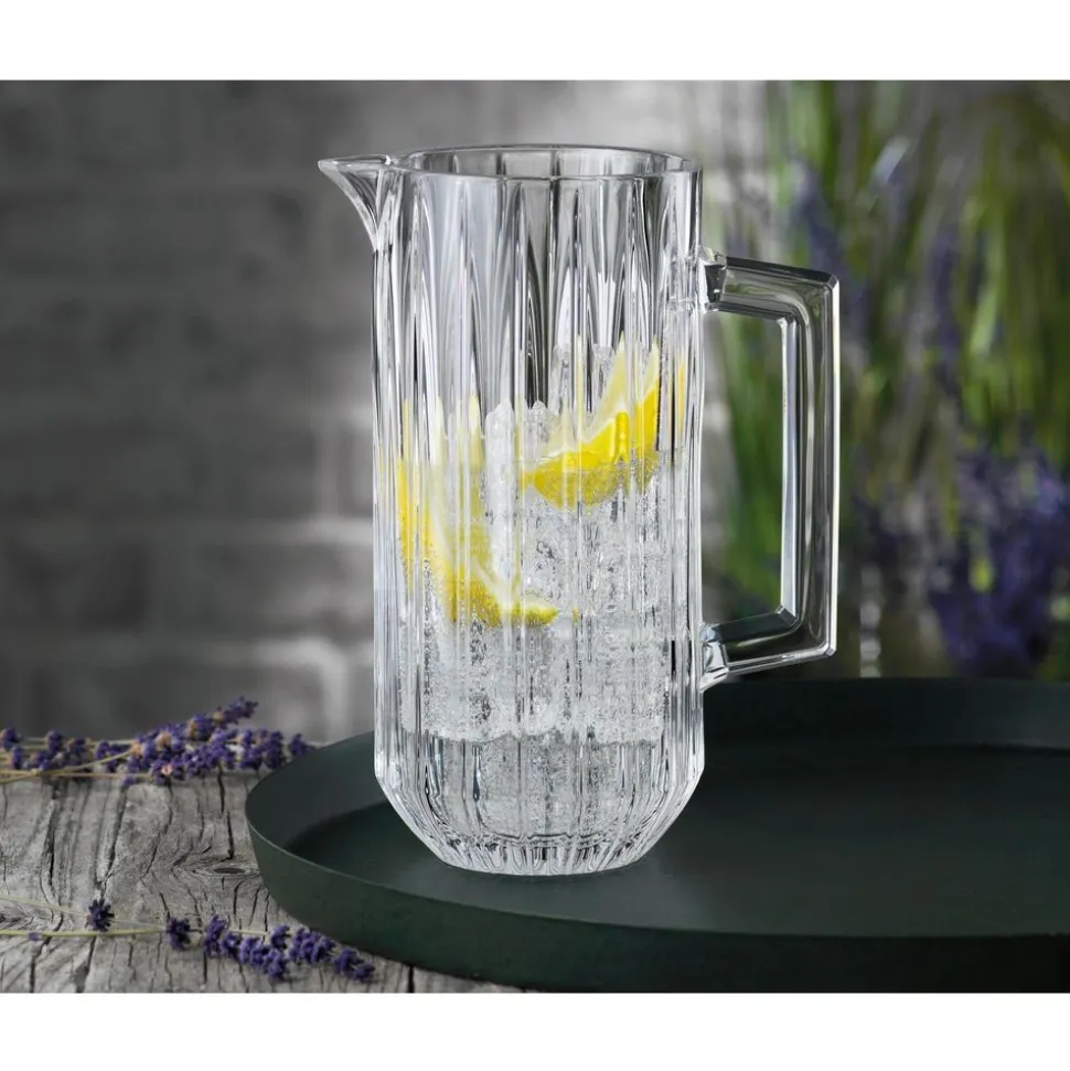 Dankzij de grote opening kunnen drankjes eenvoudig worden bereid en druppelvrij worden geserveerd via de tuit. De pitcher is gemaakt van het fijnste kristalglas en brengt glamour in elk huis.