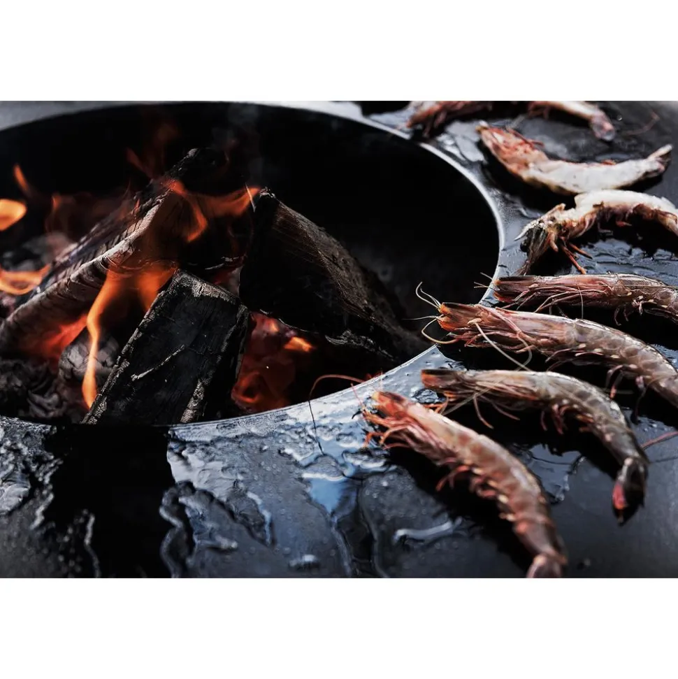Vanuit het midden straalt de warmte in een volmaakt vloeiend verloop uit, waardoor één kookplaat meerdere kooktemperaturen heeft. Of u nu eieren bakt, groenten langzaam kookt of een malse biefstuk grilt, de OFYR ontsluit een nieuwe wereld vol mogelijkheden voor gezond buiten koken.