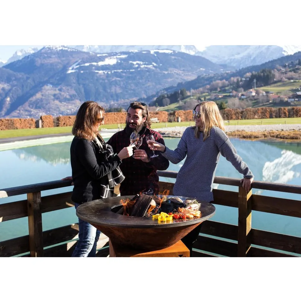 Als het tijd is voor een gezellig samenzijn in de buitenlucht verandert dit kunstwerk in een warme, gastvrije plek voor zowel intieme culinaire avonden met vrienden en familie als wel grote buitenfeesten.