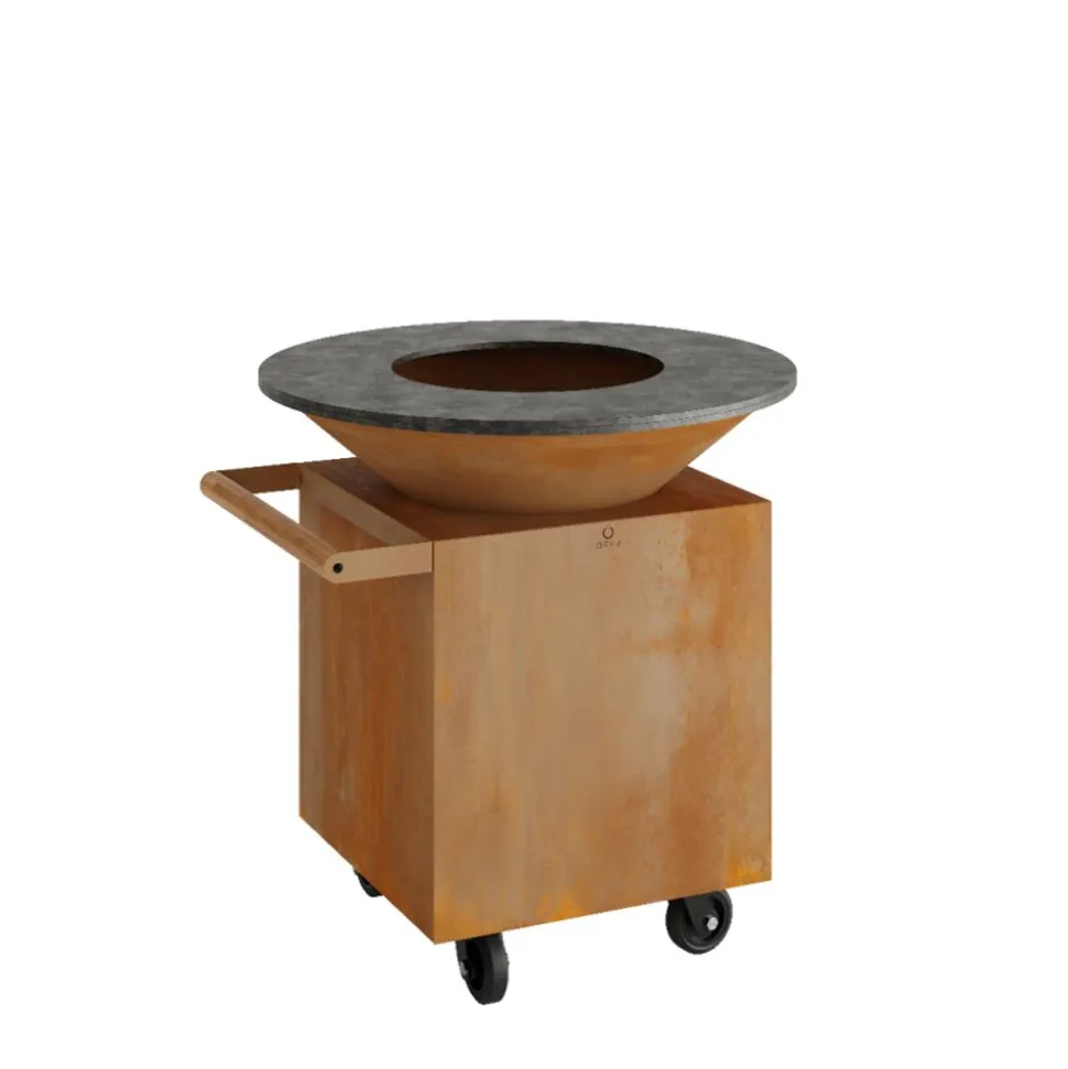 De OFYR Classic 100 PRO biedt alle voordelen van de OFYR Classic met het toegevoegde gemak van een handgreep en wielen. De kookeenheid is eenvoudig te verplaatsen. De handgreep is gemaakt van teakhout. Verkrijgbaar in 100 cm diameter.