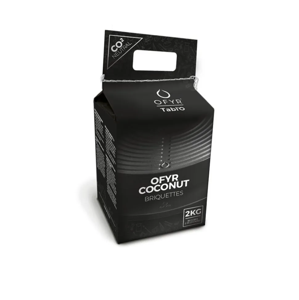 Ideaal om te gebruiken met OFYR Tabl’O zijn de OFYR Kokosnoot Briketten. Ze zijn uitzonderlijk efficiënt: veel hitte, lange verbranding (2-3 uur) met minimale rook, geur en erg weinig afvalstoffen. Ze zijn compact en 100% duurzaam, gemaakt van de afvalstoffen van kokosnoten.