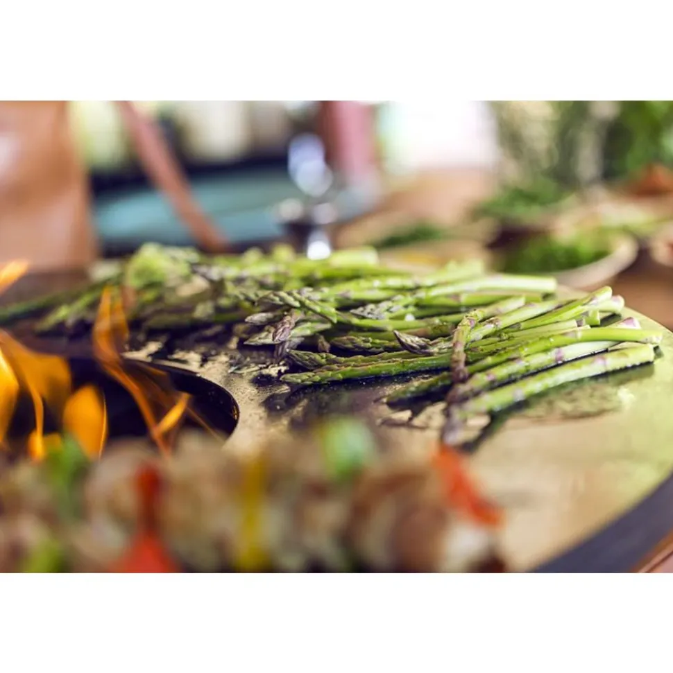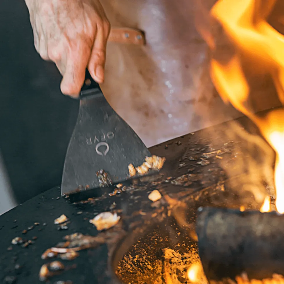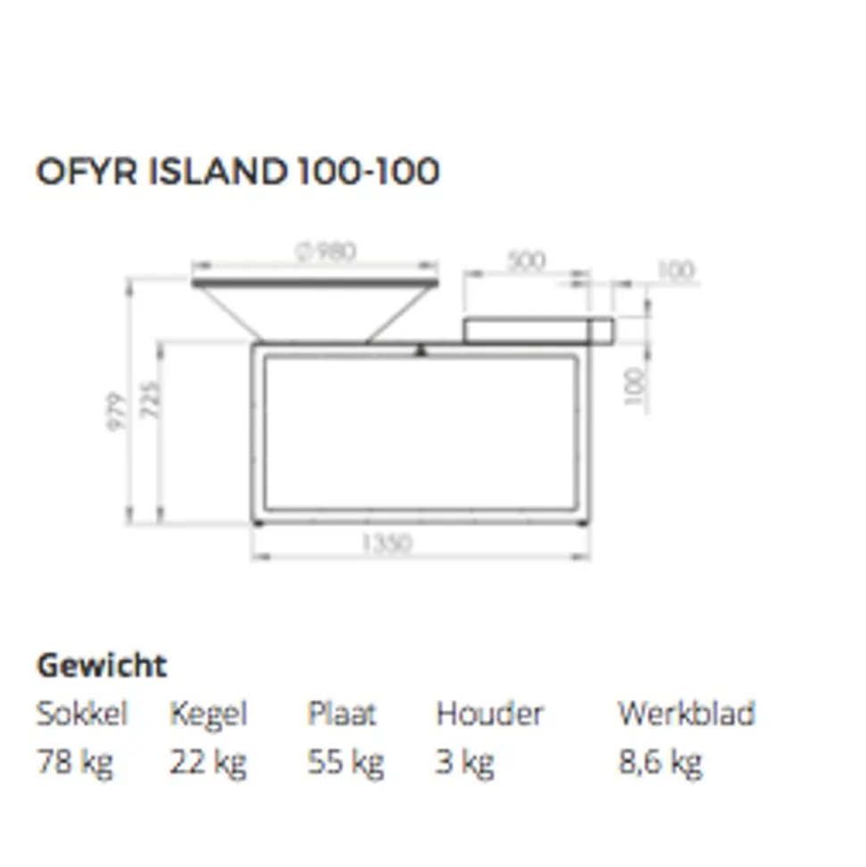 Dit alles-in-één koektoestel combineert een unieke stijl en functionaliteit in één compact ontwerp. Vervaardigd van duurzaam zwart gecoat staal en beschikbaar in 85cm en 100cm plaat diameters bestaat dit OFYR kooktoestel uit een houtopslag, een dik houten werkblad en een houder voor specerijen en accessoires. Het OFYR Island is uw complete buitenkeuken die u de ultieme beleving met familie en vrienden zal geven. De snijplank, oorspronkelijk in hout, is nu ook verkrijgbaar 2 kleuren keramiek, nl licht grijs of donker grijs. Het voordeel van keramiek is dat de snijplank onveranderd kan buiten blijven liggen na gebruik.