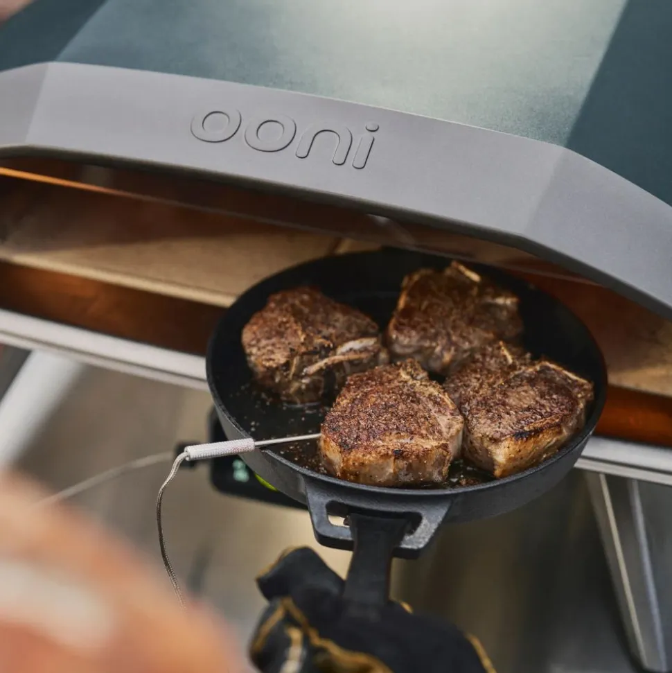 - Kook slimmer met de Bluetooth-compatibele Ooni Connect™ digitale temperatuurhub. Het display aan de voorzijde geeft realtime de omgevingstemperatuur en de voedingssonde weer en is verbonden met je telefoon om meldingen te ontvangen, zodat je altijd verzekerd bent van de perfecte bereiding.