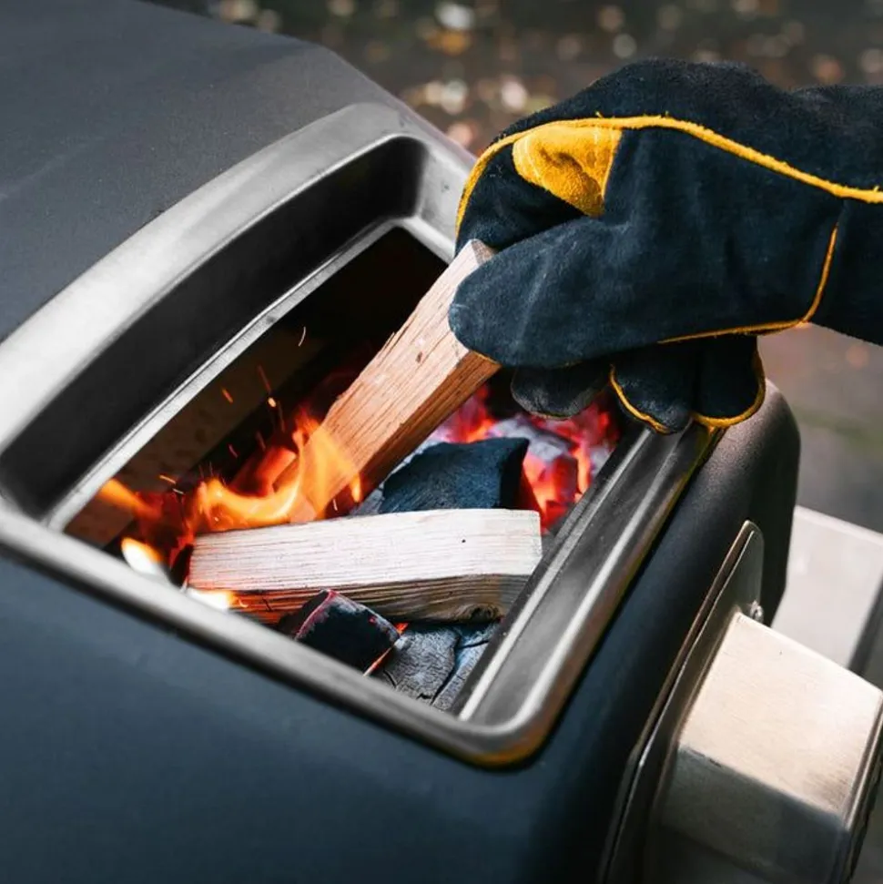 Ga aan de slag met uw brandhout met behulp van Ooni Pizza Ovenhandschoenen. Deze handschoenen ontvingen de op een na hoogste hittebestendige certificering in het VK, wat betekent dat ze bestand zijn tegen de hoogste contacttemperaturen van het Ooni-ovenassortiment. De interne aluminium isolatie en een comfortabele lederen buitenkant zorgen voor superieure hittebescherming bij hoge temperaturen. Vul met een gerust hart uw brandstof bij, wetende dat uw handen beschermd zijn in ware Ooni-stijl.