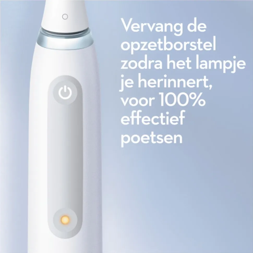 De iO 4 elektrische tandenborstel is voorzien van de beste technologie van Oral-B en combineert een door tandartsen geïnspireerde ronde borstelkop met micro-vibrerende borstelharen voor een professioneel reinigend gevoel thuis. De slimme poetsdruksensor helpt voorkomen dat u te hard of te zacht poetst om uw tandvlees beter te beschermen. Gum Guard waarschuwt u als u te veel druk op uw tanden uitoefent. Vervang uw Oral-B iO opzetborstel elke 3 maanden voor de beste resultaten.