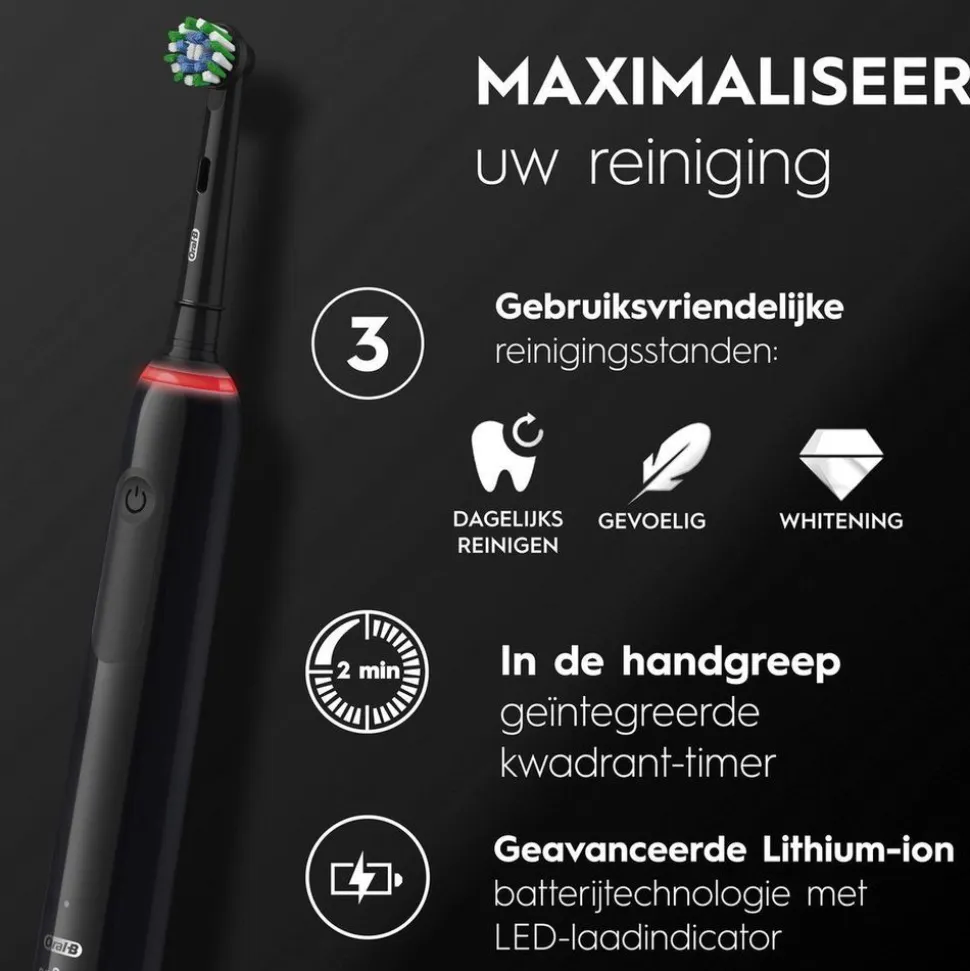 • Drie poetsstanden: Dagelijkse reiniging, Whitening en Gevoelige tanden