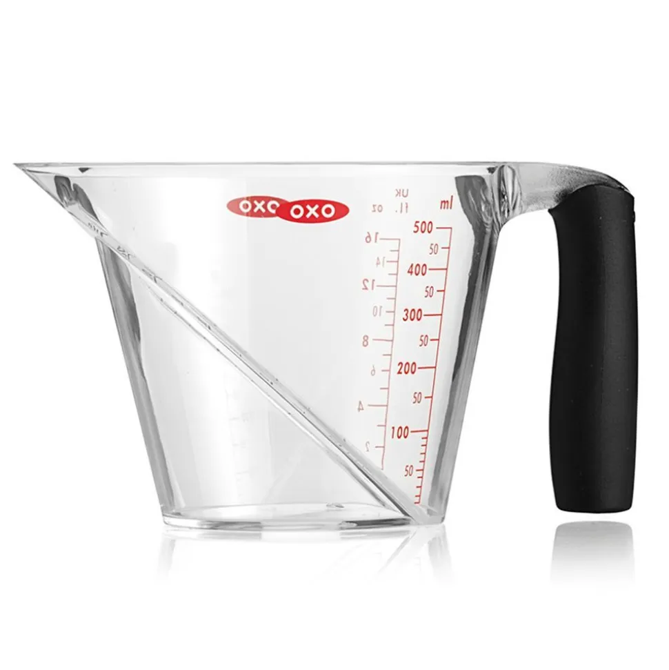 OXO heeft met de Good Grips gebogen maatbeker een ware revolutie teweeggebracht. Dankzij het gepatenteerde gebogen oppervlak kunt u de maataanduiding lezen door simpelweg bovenin de beker te kijken. U hoeft daardoor nooit meer constant de hoeveelheid vloeistof te controleren. Het handvat is zacht en heeft een anti-slip grip. Met de fel gekleurde maataanduidingen in ounce en millimeter is elk recept onder te brengen. Verkrijgbaar in versies met 1, 2, 4 en 8 cup beker(s). De maatbekers zijn vaatwasmachinebestendig en BPA-vrij.