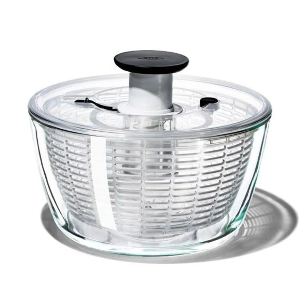 Met de OXO Slacentrifuge met Glazen Schaal is het drogen van sla een makkie. Hij is zo mooi en werkt zo licht, dat je niet wilt stoppen. Dankzij de hoge centrifugesnelheid is de sla in een paar seconden al droog. De prachtige GLAZEN schaal gebruik je om de sla stijlvol te serveren.