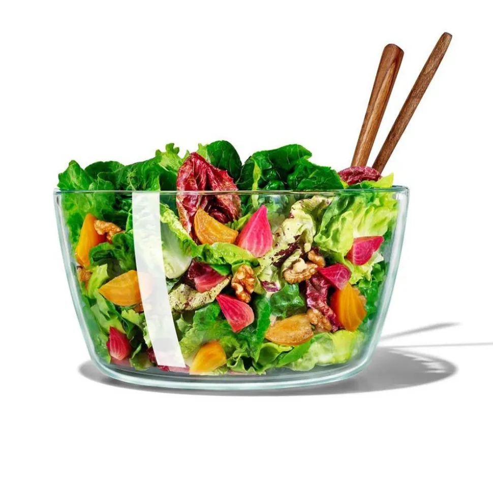 De sla serveer je in de mooie, heldere glazen schaal. En na gebruik mag de schaal in de vaatwasser.