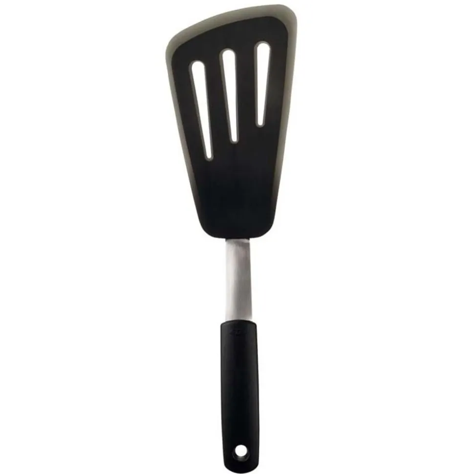 De OXO Flexibele Spatels van Silicone combineren de kracht van roestvrij staal met de voordelen van silicone. De buitenlaag van silicone, die hittebestendig is tot 315 graden C en die veilig is voor kookgerei met antiaanbaklaag, zit vastgehecht aan een flexibele roestvrijstalen kern voor extra stabiliteit. De Spatels hebben dunne, flexibele randen die gemakkelijk onder alle soorten voedsel glijden en ideaal zijn voor het keren van fragiel voedsel, terwijl ze dit intact houden. De Omeletspatel is ideaal voor het keren van langer, delicaat voedsel, zoals omeletten en visfilets. Alle Flexibele Spatels hebben zachte, comfortabele antislip handvatten en zijn de perfecte metgezellen voor kook- en bakgerei met een antiaanbaklaag.