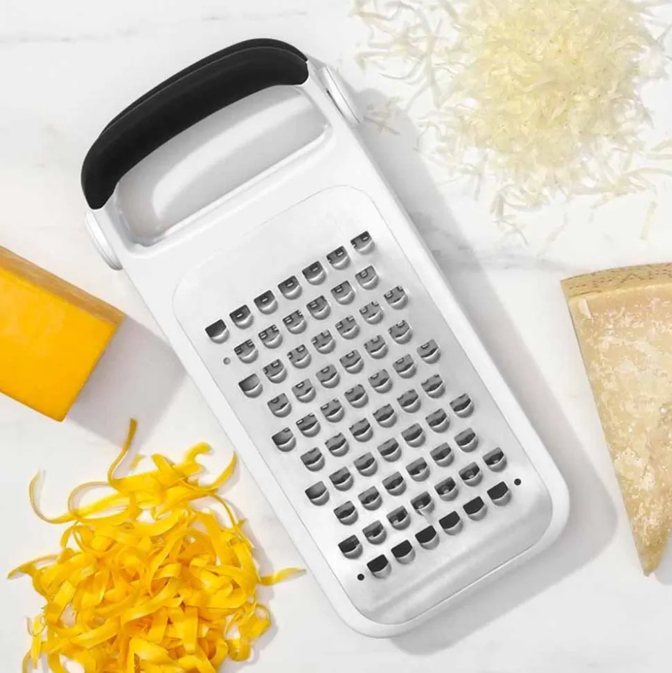 Met deze vouwbare rasp van OXO Good Grips rasp je heel eenvoudig kaas, chocolade, aardappelen, ui en meer. Zo maak je in een handomdraai rösti, een gesnipperd uit of geraspte kaas voor over de pasta.