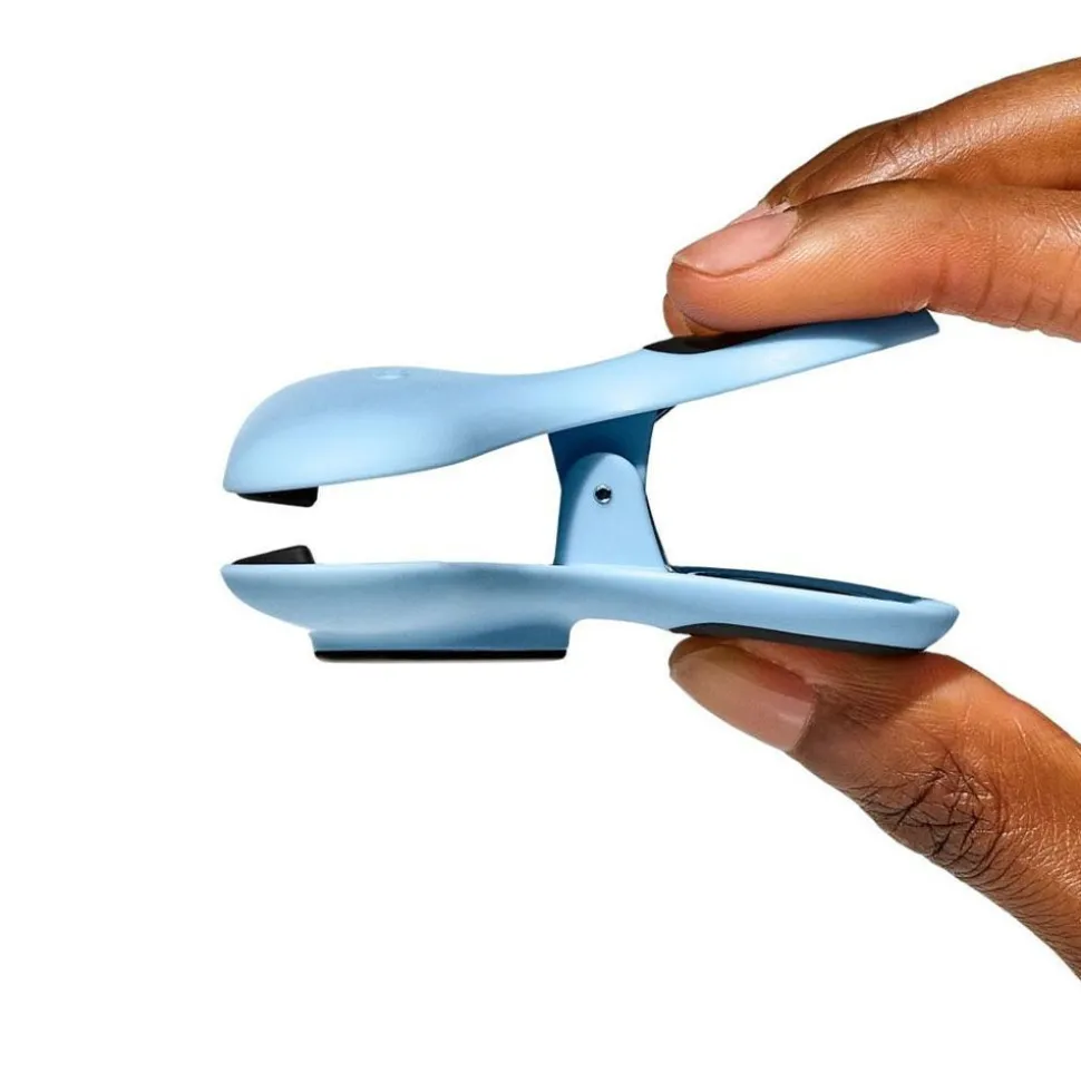 Als je de verpakking hebt opengemaakt, gebruik je soms maar een deel. De rest hou je vers met de zeer sterke OXO Zaksluiter. Je knijpt hem open, zet hem op de zak en je laat hem los. De clip sluit zich en de zak zit dicht.