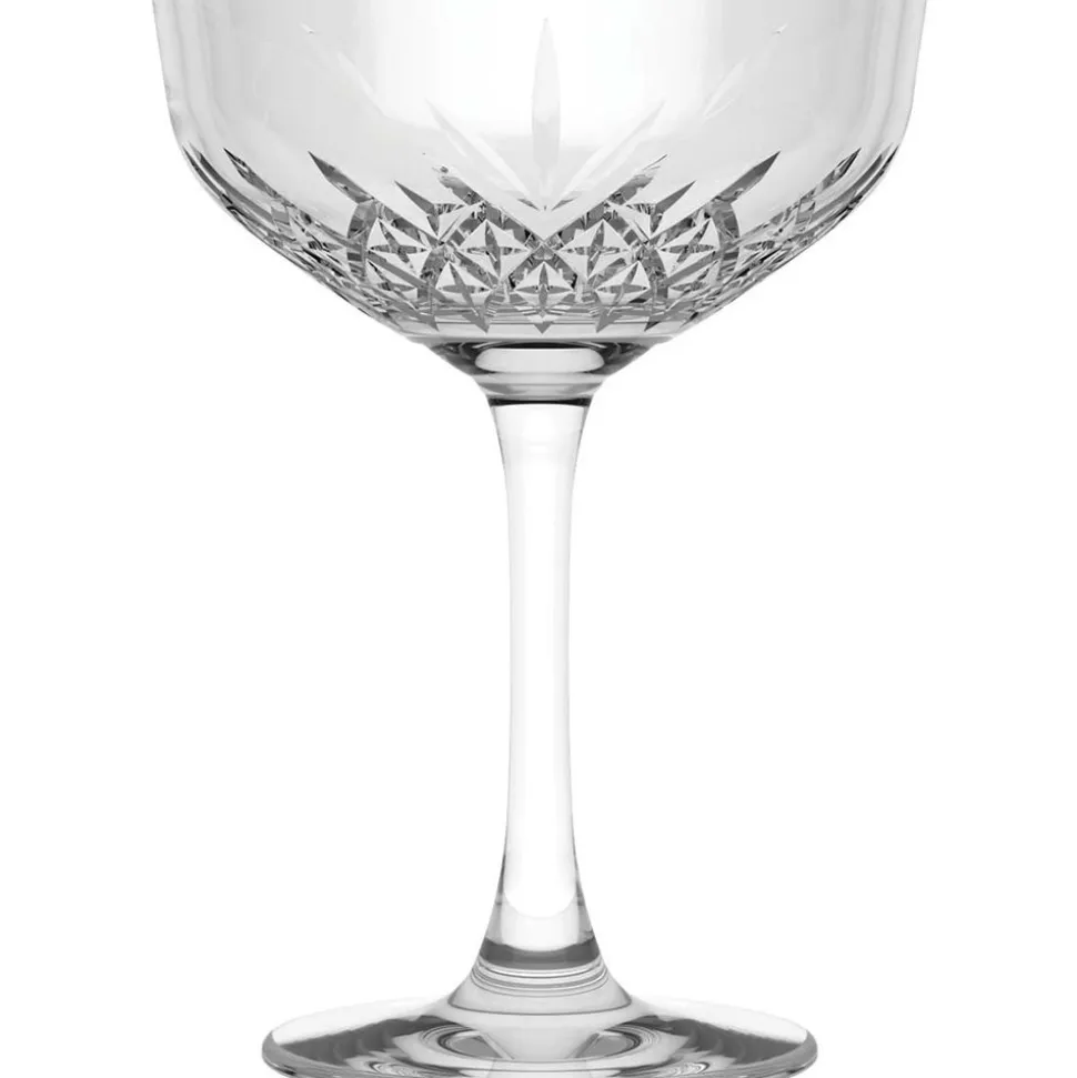 Deze prachtige Timeless champagnecoupes zijn zeer geschikt voor het schenken van diverse champagnes, Prosecco of mousserende wijnen. En ook een cocktail zal deze glazen perfect staan! Deze glazen maken met hun opvallende gehoekte glasbewerking en hoge vrouwelijke steel iedere drank bijzonder. Deze elegante coupes zijn gemaakt van extreem sterk glas en zijn perfect voor een feestje en dagelijks gebruik. En na gebruik kunnen deze glazen gereinigd worden in de vaatwasmachine. Deze set bestaat uit 12 champagnecoupes met een inhoudsmaat van 27 cl.