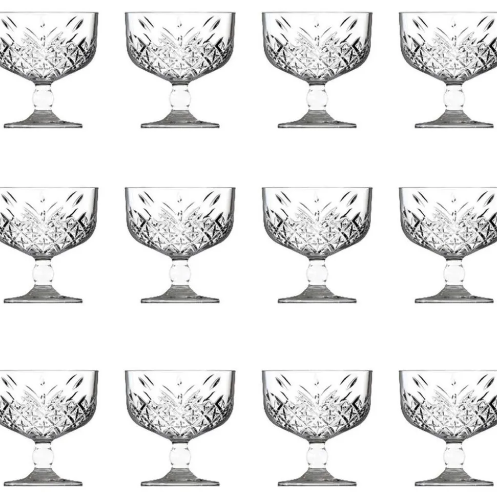 Deze prachtige Timeless ijscoupes zijn geschikt voor iedere afsluiting van een diner. Of je nu kiest voor ijs, een mousse sorbet. Deze Timeless ijscoupes zijn altijd het juiste glas! En ook een cocktail zal deze glazen perfect staan! Deze glazen maken met hun opvallende gehoekte glasbewerking en korte vrouwelijke steel ieder dessert tot een waar feestje! Deze elegante coupes zijn gemaakt van extreem sterk glas en zijn perfect voor een feestje en dagelijks gebruik. En na gebruik kunnen deze coupes gereinigd worden in de vaatwasmachine.Â