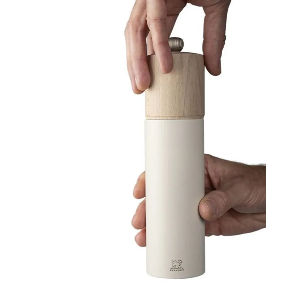 Deze zoutmolen van Franse makelij maakt indruk met zijn strakke lijnen en eigentijdse charme. De vederwitte uitvoering is het pronkstuk van de Boreal-collectie en kan perfect gecombineerd worden met alle pepermolens uit de reeks, voor een prachtig tweekleurig duo, waardoor je in één oogopslag je peper- en zoutmolen kan onderscheiden. Deze zoutmolen is voorzien van een maalwerk uit roestvrij staal voor droge zoutkristallen, met levenslange garantie. Met de knop bovenop de molen kan je de maling van de zoutkristallen aanpassen, van fijn tot grof.