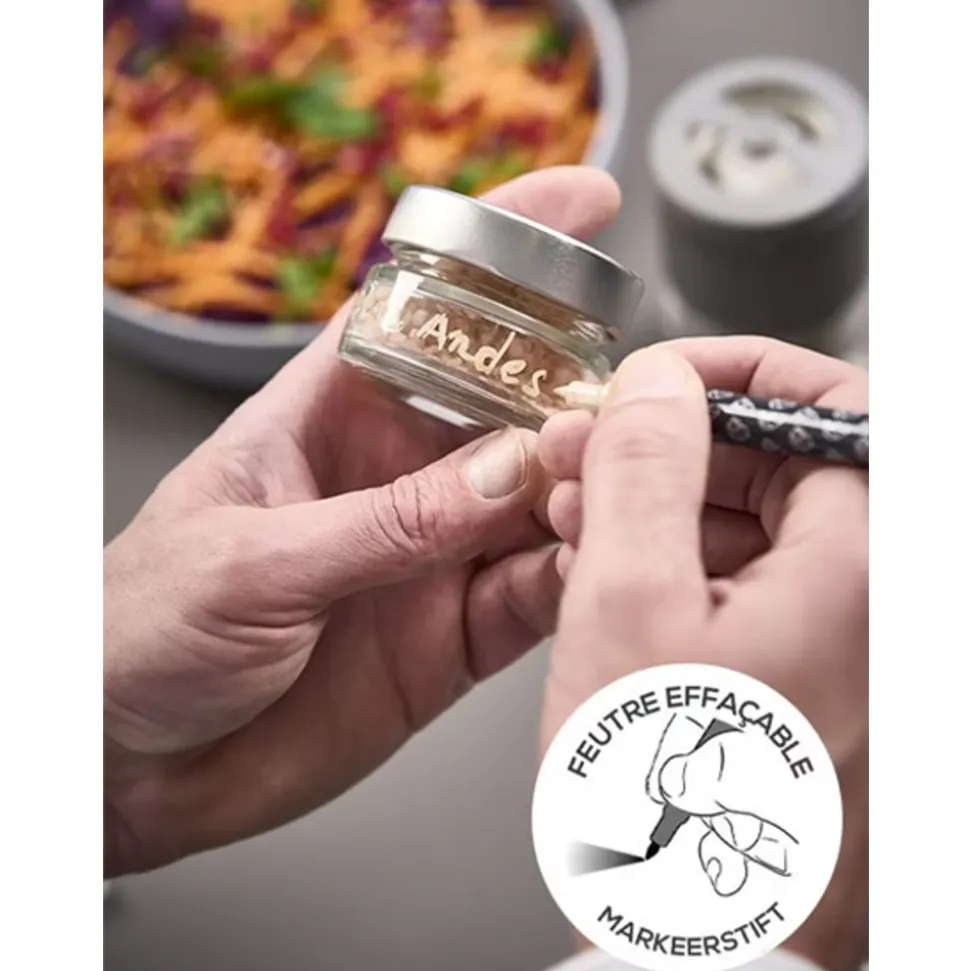 Het Maestro Zoutset, innovatief concept van de Zoutbar, vernieuwt de kunst van het kruiden. Met zijn verwisselbare reservoirs, die je eenvoudig kunt losschroeven, wisselt hij met één handeling van het ene zoutreservoir naar het andere. Uitgerust met het Zirconium mechanisme, een innovatie van Peugeot, en het precieze u’Select instelbare systeem, biedt het ook de mogelijkheid om te spelen met de texturen van zout en de maling af te stemmen op je wensen, van ijskoud zout, een extreem fijne maling, tot knapperig zout. Gemaakt in Frankrijk, combineert deze molen innovatie en praktischheid met zijn houten lichaam en glazen reservoir. Het wordt geleverd met 2 zouten van oorsprong, rijk aan mineralen en sporenelementen, en een aromatische mix die frisheid brengt, plus een adviesboekje en een uitwisbare stift.