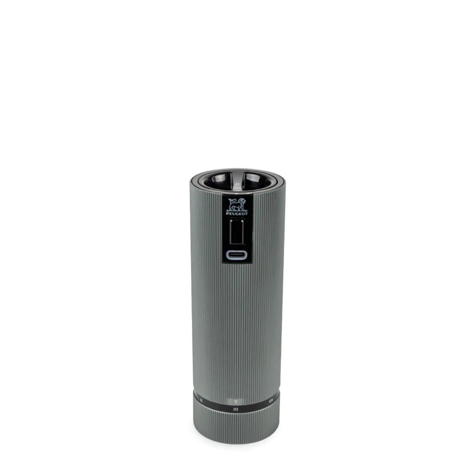 De elektrische Line-zoutmolen zit vol slimme snufjes, van bijvullen tot malen. Deze trouwe bondgenoot helpt je de heerlijkste gerechten op tafel te toveren! Deze nieuwe, hightech elektrische molen verleidt niet alleen met zijn stoere look, maar ook met zijn prestaties. De compacte molen ligt perfect in de hand. Bijvullen wordt kinderspel dankzij het slimme, trechtervormige reservoir. Hij is voorzien van het gepatenteerde regelsysteem u’Select van Peugeot en maalt dus met een ongeziene precisie. Wordt het een fijne maling (stand 1) die de pittige toetsen van de peper onthult, of eerder een grove maling (stand 6) die alle aroma’s ontsluiert? Of iets daar tussenin? Deze elektrische molen is het perfecte geschenk … ook voor jezelf!
