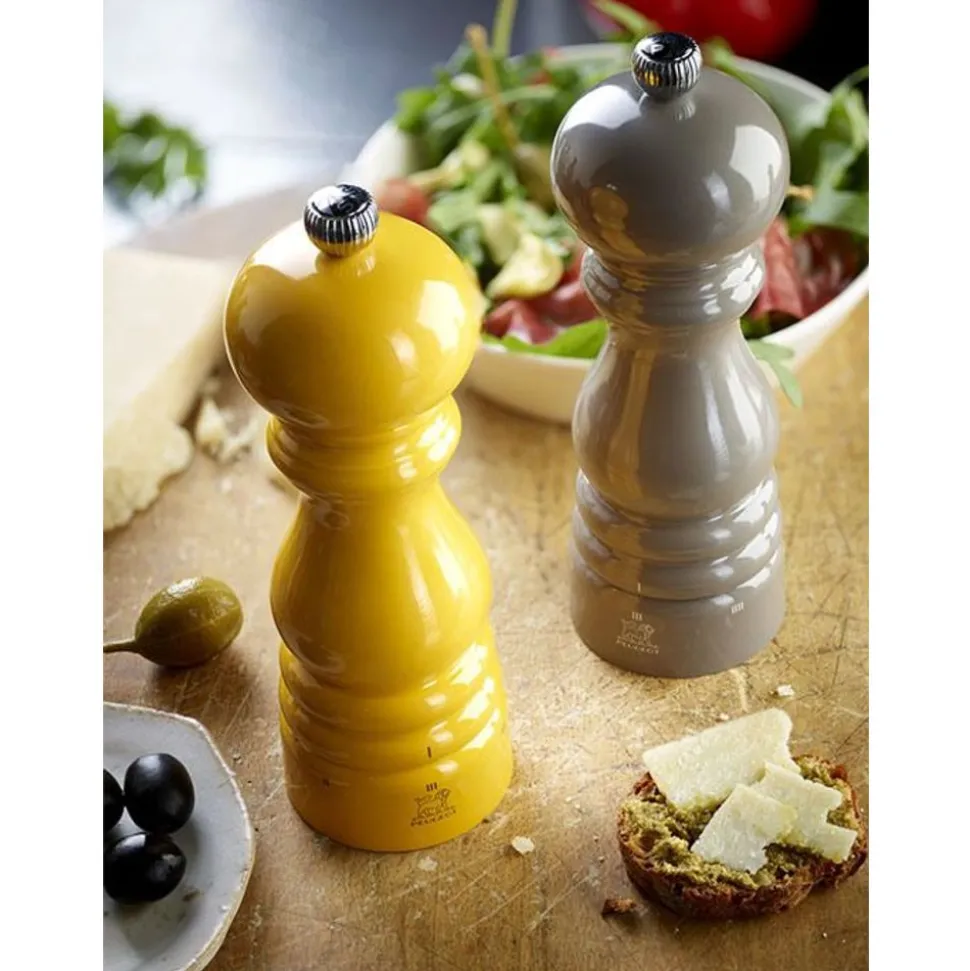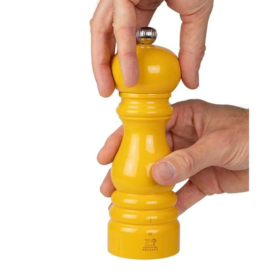 In 1987 riep Peugeot het model Paris in het leven, tot grote vreugde van chef-koks wereldwijd. Een tijdloos silhouet, feilloze ergonomie, duurzaamheid en straffe prestaties. Beter kunnen we deze iconische molen niet omschrijven. Met de collectie ParisRama tooit de Paris-molen met u’Select zich met de heerlijkste kleurtjes. Met zijn prachtige saffraangele afwerking betovert de 18 cm grote Paris-zoutmolen met u’Select tafel én smaakpapillen. Hij is niet alleen mooi maar zet ook straffe prestaties neer, met zijn systeem voor een precieze maalgraad en zijn stalen mechanisme met levenslange garantie. De Paris-molen met u’Select in saffraangeel zal je nog vele jaren gezelschap houden in de keuken en op tafel.
