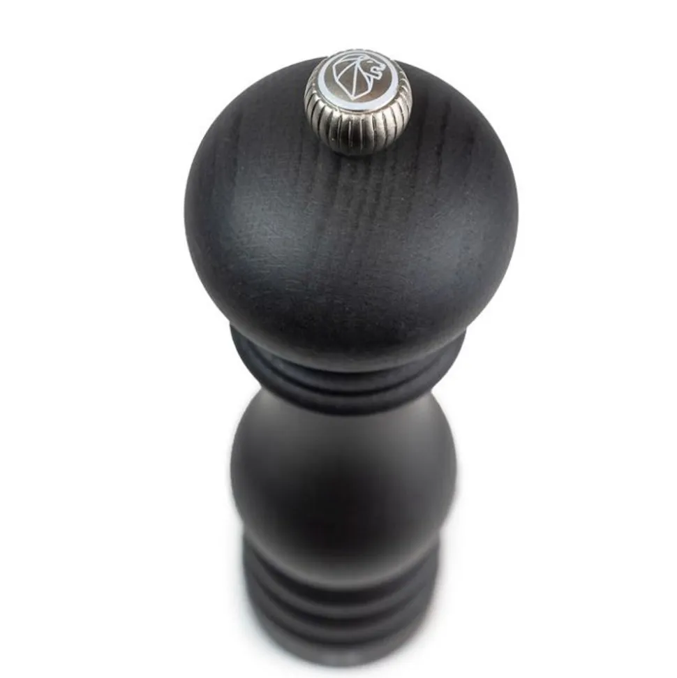 Het archetype van de molen, het model Paris van Peugeot, herkenbaar aan zijn gebogen vorm, is een referentie in de wereld van de gastronomie. Hij is hier te vinden in een nieuwe chique en elegante antracietgrijze afwerking met een lichte gemetalliseerde uitstraling die de houtnerven in de verf zet, waardoor een verbluffend grafisch spel ontstaat. Deze manuele zoutmolen van 18 cm is op een unieke wijze uitgerust met een door Peugeot gepatenteerd maalwerk dat het mogelijk maakt om de maalgraad van het zout in één enkele beweging in te stellen. Hiervoor, volstaat het gewoon te draaien aan de ring in de voet van de molen, die een schaalverdeling heeft van 1 tot 6. Zo krijgt u de perfecte maalgraad voor elk gerecht. De zoutmolen Paris grafiet u’Select van 18 cm, die even mooi is als functioneel, zal onmisbaar worden in uw keuken.