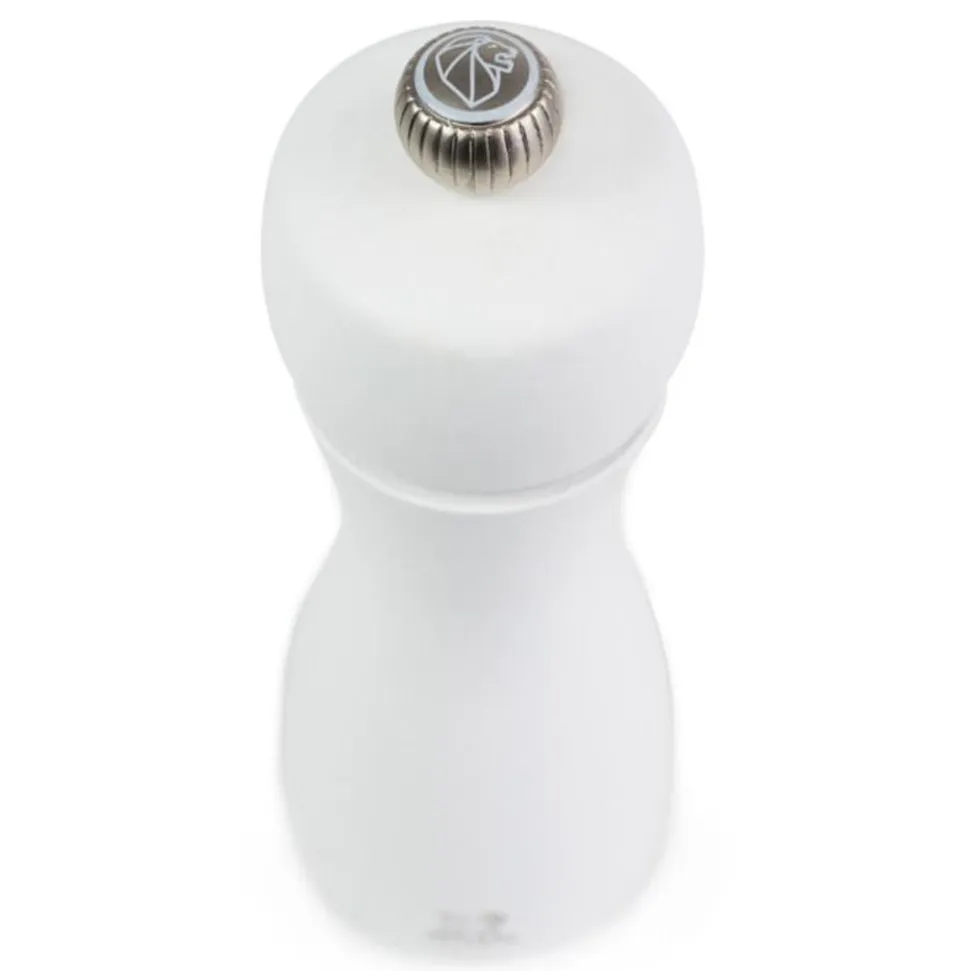 De mat witte kleur van deze manuele zoutmolen Tahiti onthult al zijn charme in dit stuk. Toch trekt Tahiti nog discreet alle aandacht door zijn slanke ronding die zorgt voor een goede grip. Deze molen, volledig uit hout, herbergt het efficiënte Peugeot-maalwerk met onbeperkte garantie. De knop bovenaan laat u toe om de maalgraad in te stellen: hoe vaster u hem aandraait, hoe fijner de maalgraad. Deze elegante zoutmolen Tahiti zal makkelijk zijn plaats vinden op uw tafel of in uw keuken.
