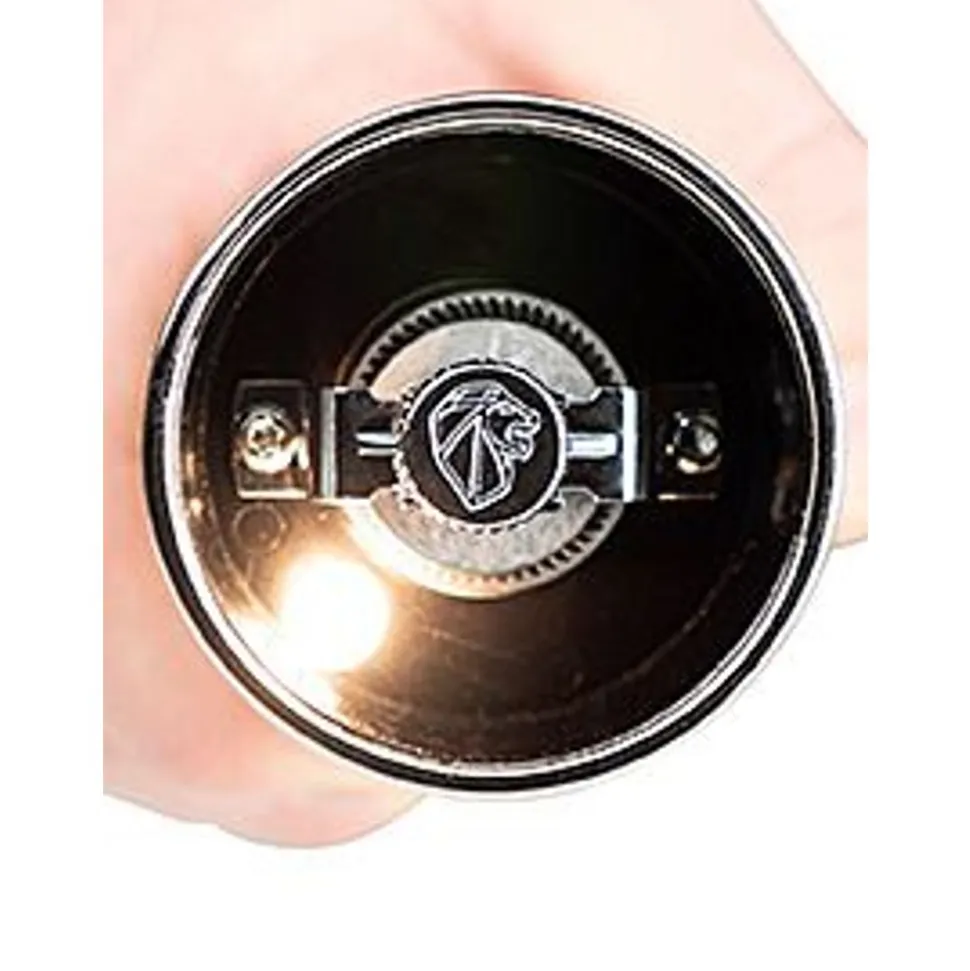 De elektrische pepermolen Zéli is met zijn hedendaagse geborstelde metalen coating net zo praktisch als efficiënt. Deze compacte elektrische molen op batterijen, 14 cm groot, ligt perfect in de hand. Eén druk op de knop bovenaan volstaat om de molen te bedienen en het debiet van de peper te verlichten. Tenslotte kunt u dankzij de instelknop onderaan in de molen de maalgraad instellen. De elektrische pepermolen Zéli wordt geleverd met 6 batterijen en een vervanglampje, een waar genot om te gebruiken.