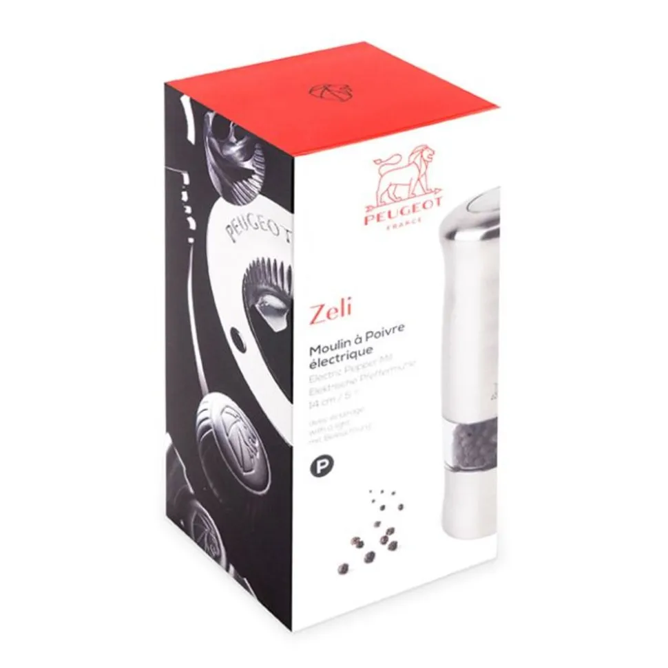 Het model Zéli van Peugeot is een compacte elektrische pepermolen van 14 cm in een hedendaags ontwerp. Met deze pepermolen kunt u met één hand malen en met de andere koken.