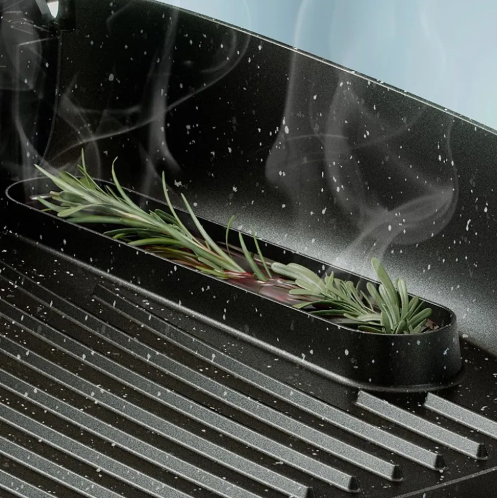 Gebruik de geribbelde kant voor het grillen van vlees en vis, en de platte kant als bakplaat voor eieren, spek, groenten en nog veel meer.