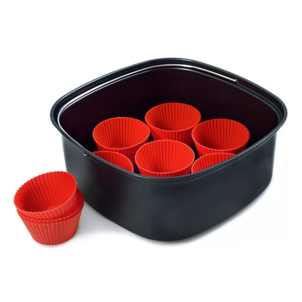 Het verwijderen van je muffins of cupcakes uit deze Airfryer muffinvormpjes is eenvoudig door het flexibele materiaal. Door de gekreukte randen zien je muffinbekers er nog beter uit! Gemaakt van geurloze siliconen kun je deze Airfryer muffinvormpjes keer op keer hergebruiken!