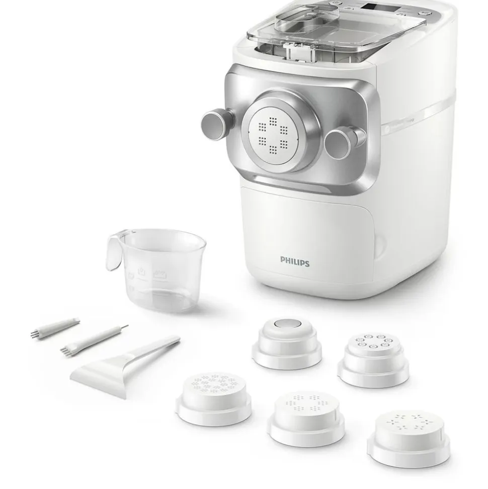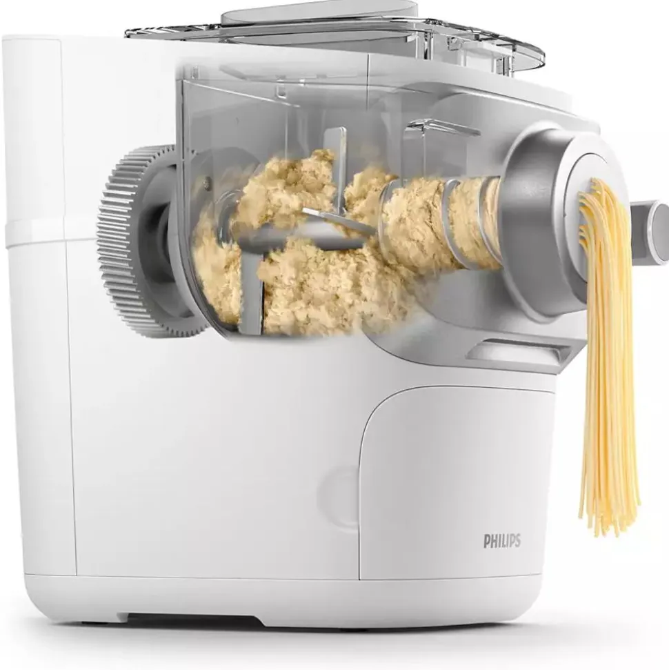 Met de Philips 7000-pastamachine kunt u in minder dan 10 minuten een scala aan smakelijke, zelfgemaakte pastagerechten bereiden*. Dankzij de eenvoudige reiniging en grote capaciteit is dit het ideale hulpmiddel om thuis te genieten van verse pasta met familie en vrienden.