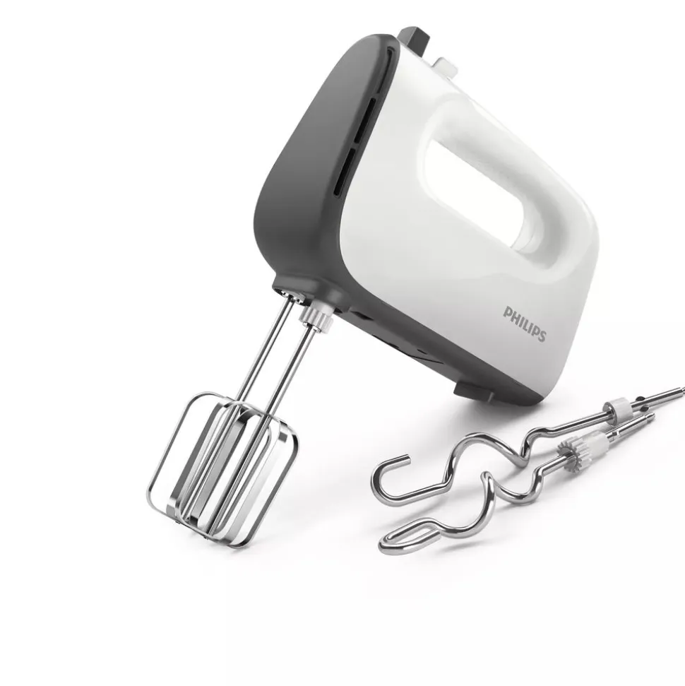 Met de Philips-mixer maakt u heerlijke luchtige cakes en brood voor uw gezin. Luchtige, kegelvormige kloppers zorgen voor kortere kloptijd en glad cakebeslag. Met de krachtige motor van 450 W komt u moeiteloos door het taaiste deeg.