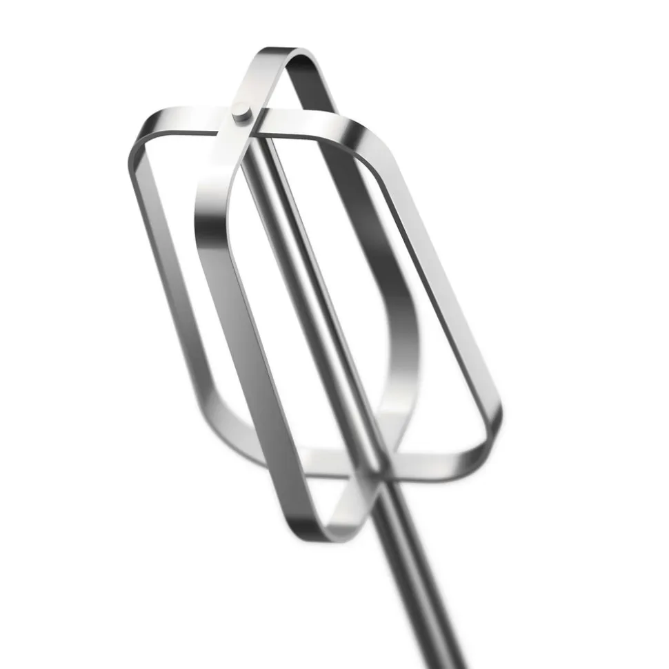 De unieke kegelvormige klopper zorgt voor maximale integratie van lucht die bijdraagt aan een luchtige structuur en glad cakebeslag