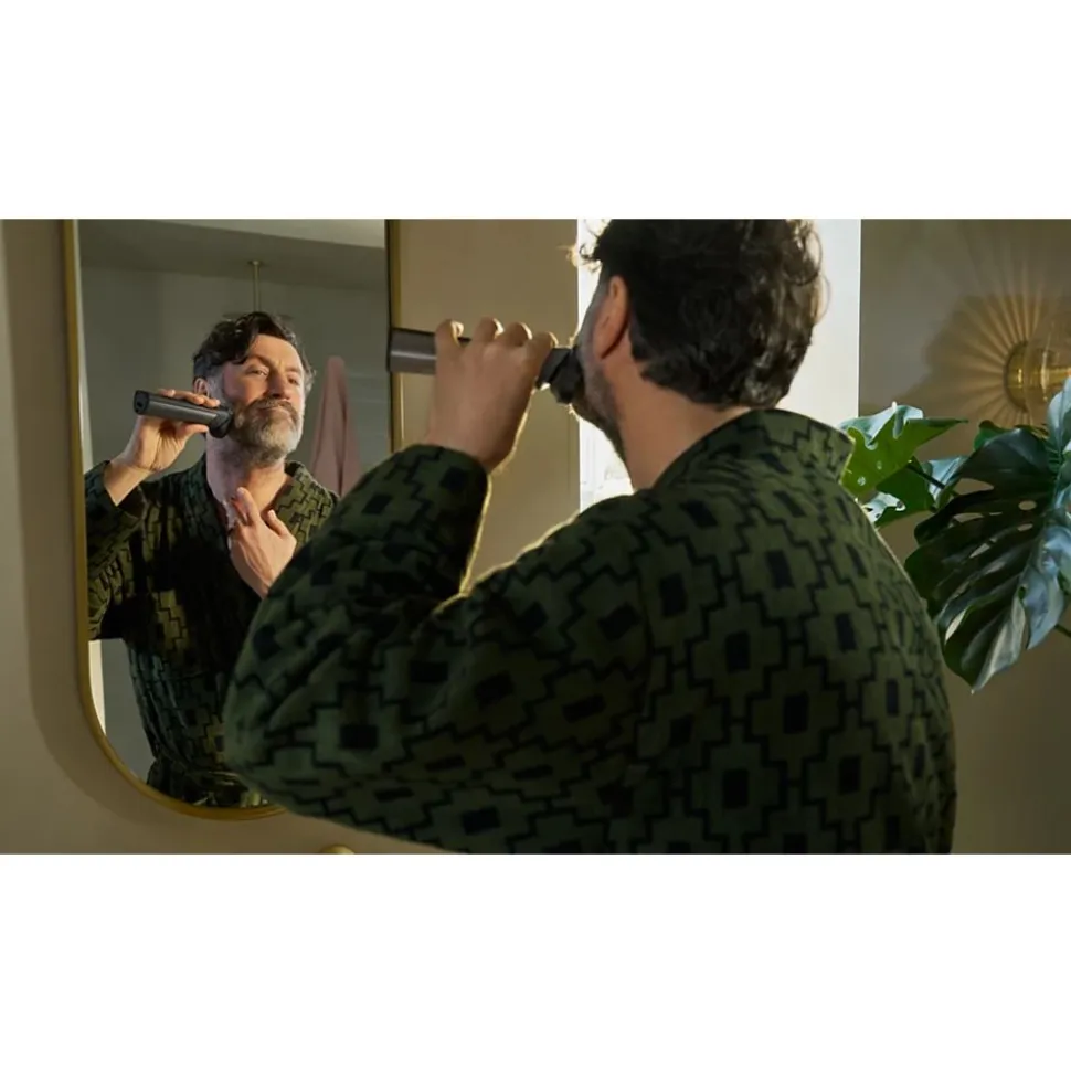 De set met meerdere trimkammen biedt 22 lengtestanden van 0,5 mm tot 16 mm in precisiestappen van maximaal 0,2 mm, zodat u uw baard kort of lang kunt trimmen. Door het smalle design van de precisietrimmer kunt u makkelijker scherpe lijnen en details aanbrengen, terwijl de metalen trimmer uw wangen, kin en hals bijwerkt voor het gewenste baardmodel.