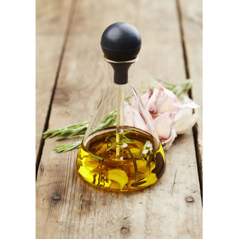 Besprenkel je salade eenvoudig met olie met deze glazen oliefles met pipet van Point-Virgule.