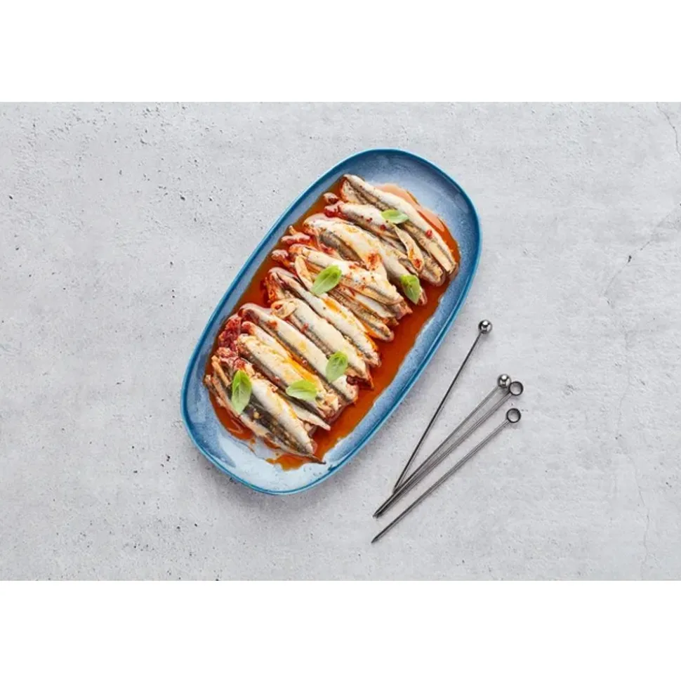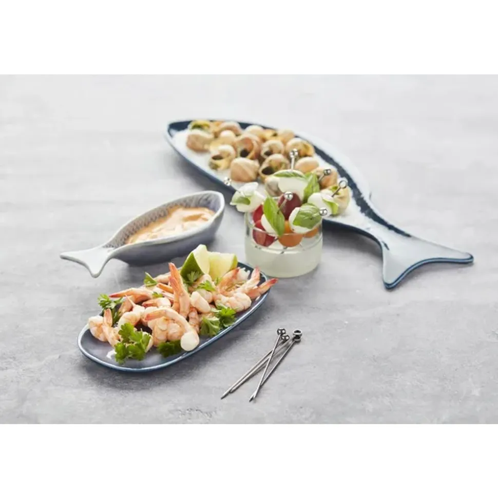 - SET VAN 12 MULTIFUNCTIONELE PRIKKERS: GESCHIKT VOOR ZEEVRUCHTEN EN ANDERE APERITIEVEN.