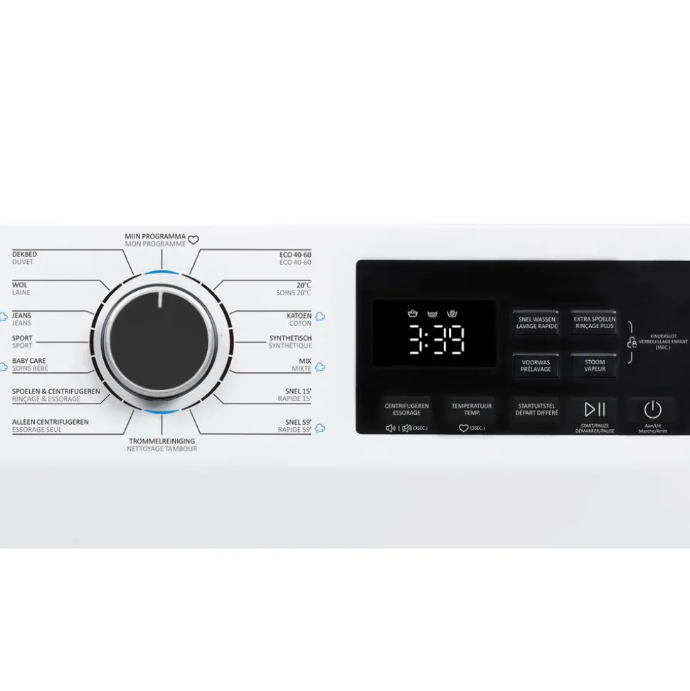 De wasmachine biedt maar liefst 16 programma’s, waaronder Eco 40-60, katoen, synthetisch, mix, snelwas (15 en 59 minuten), wol, jeans, sport en een speciaal programma voor babyverzorging. Ook zijn er handige extra’s zoals trommelreiniging, voorwas, extra spoelen en stoomfunctie. Zo krijgt elk type was de juiste behandeling.