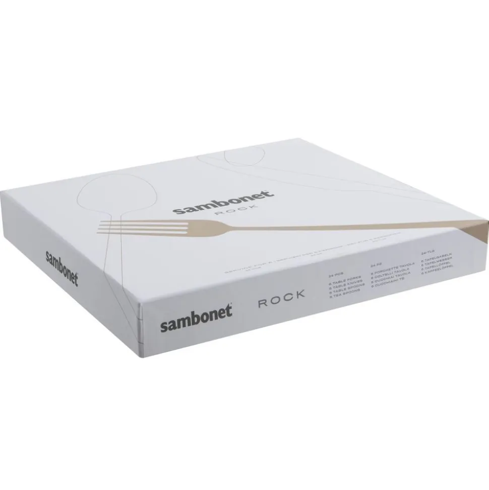 Voor Sambonet is ‘rock’ zijn meer dan een esthetische kwestie. Het nieuwe bestek Rock is extreem veelzijdig en voegt tegelijkertijd persoonlijkheid en vastberadenheid toe aan de tafel: het is origineel en goed ontworpen met een verfijnde stijl. De vierkante lijnen en de dikte van het roestvrij staal zijn uniek, evenals de functionele en eigentijdse stijl.