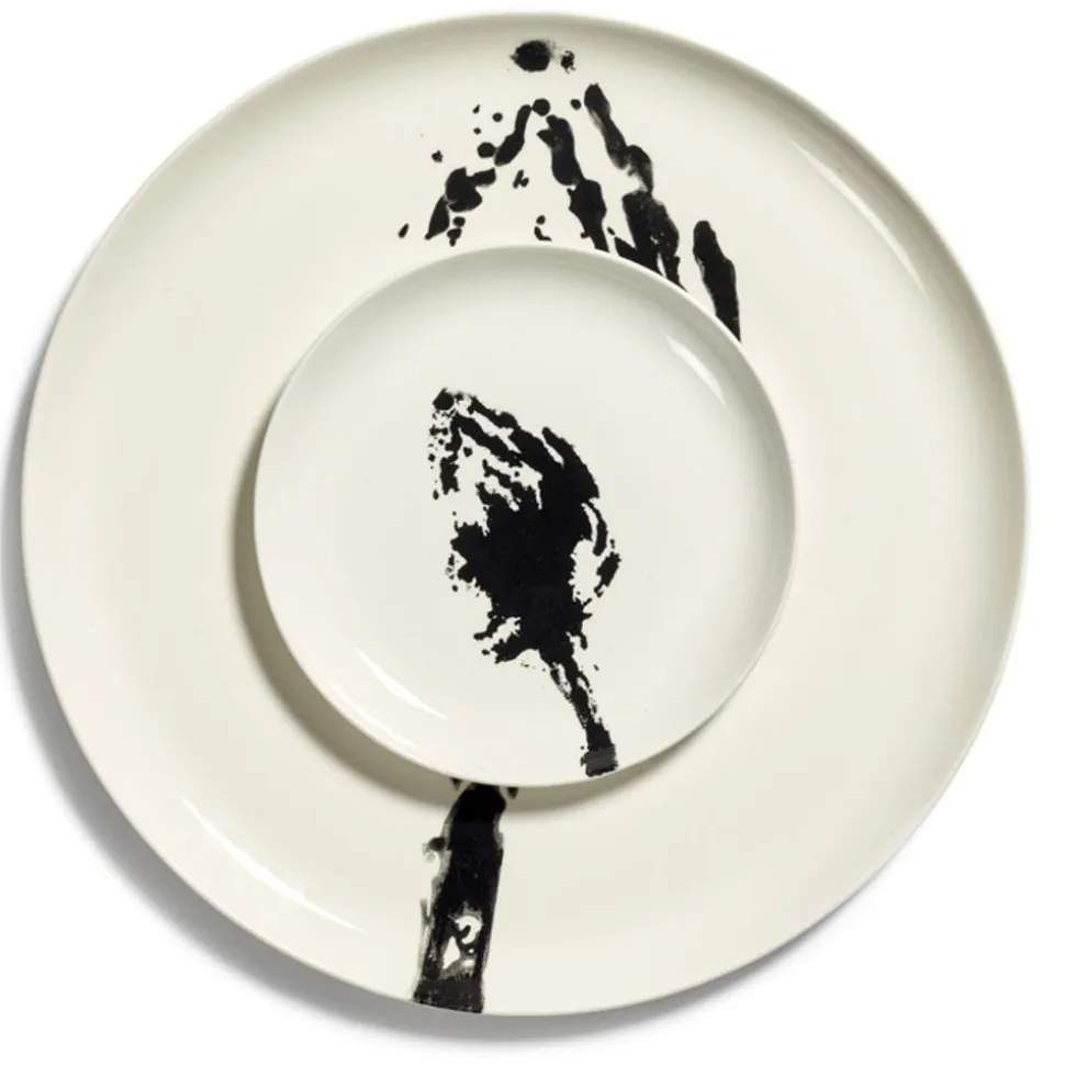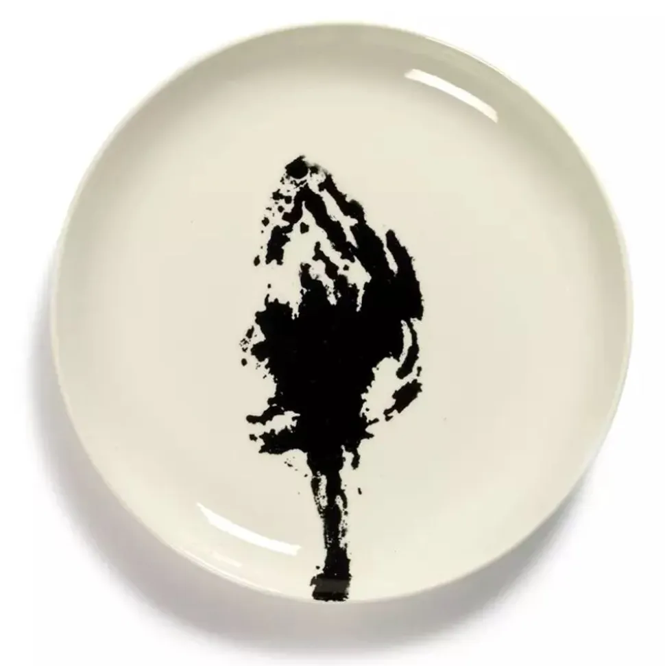 Dit bord van aardewerk in een frisse witte kleur, met een abstracte zwarte artisjok afbeelding, vertelt het verhaal van de uitbundige eenvoud waar de Feast collectie van Ottolenghi bekend om staat. De organische tekening en de vorm van het bord voegen een vrolijke noot toe aan je tafelsetting.