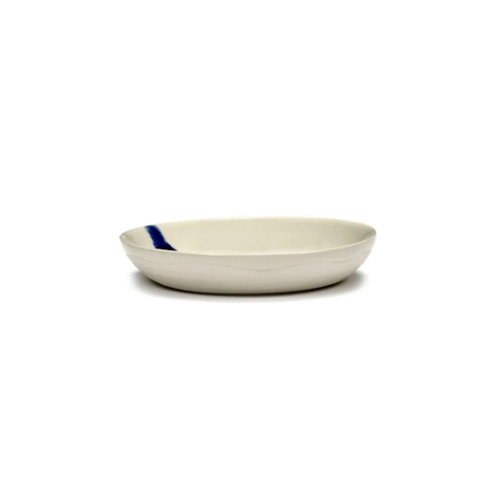 Breng een vleugje vrolijkheid op tafel met deze witte serveerschaal, versierd met een abstracte blauwe artisjok afbeelding. Het kleurenspel en de organische penseelstreken weerspiegelen perfect de sfeer van de Feast collectie van Ottolenghi.